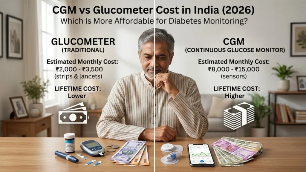 Here’s a quick side-by-side on CGM vs glucometer costs in India: