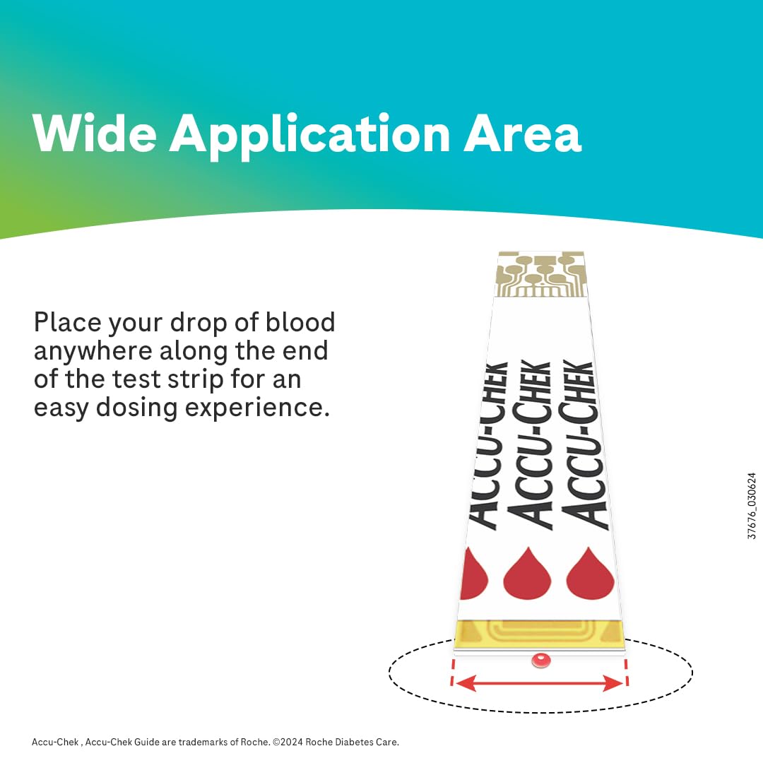 • Wide Dosing Area: Apply just a small drop of blood with the easy-to-use, wide test strip dosing area.