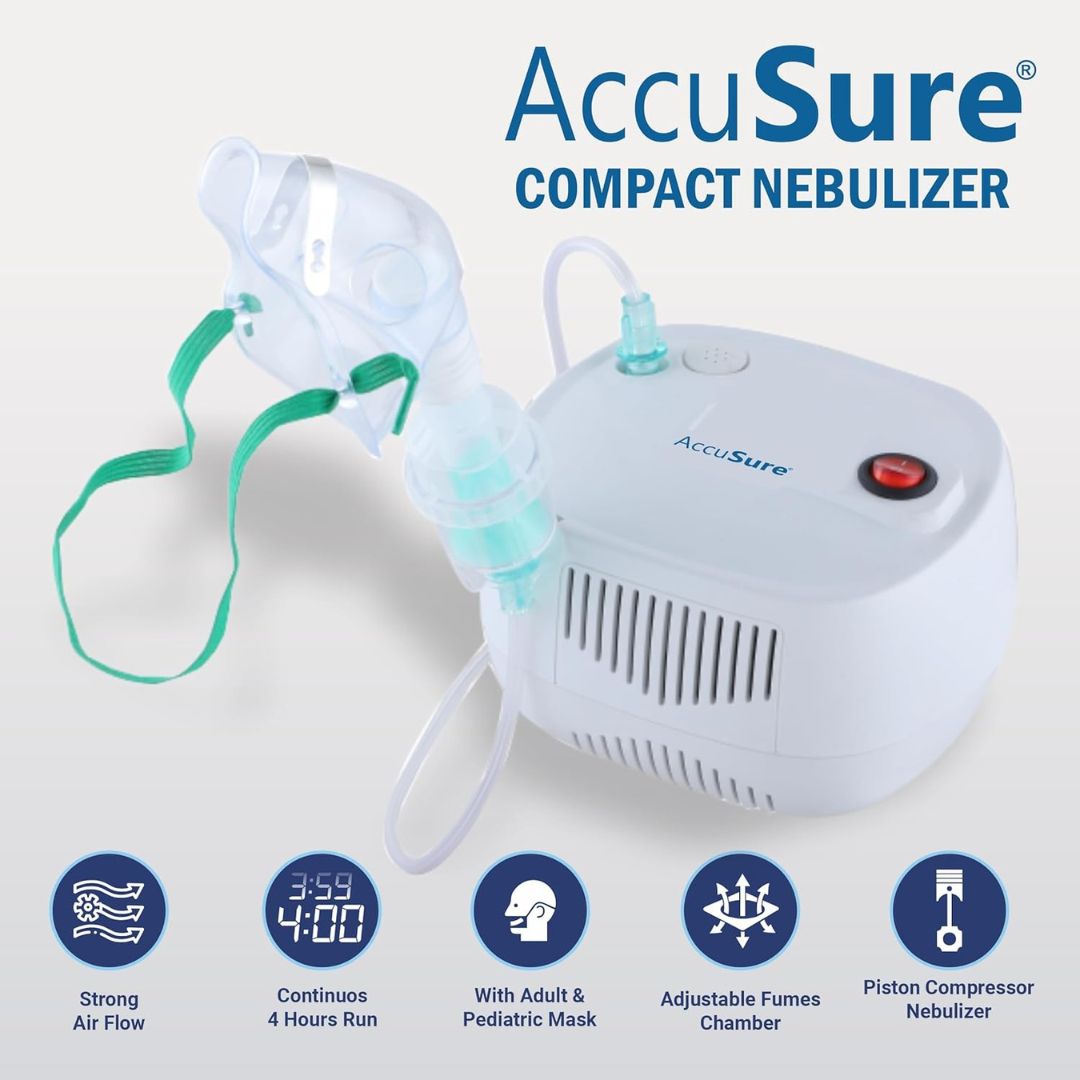 AccuSure Ultra Compact & Low Noise Compressor Nebulizer For Child & Adult