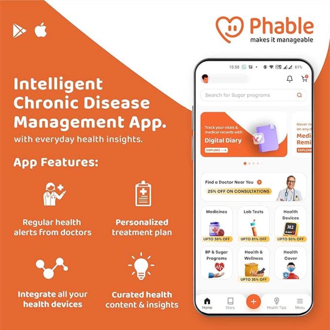 The Phable Care 360 Blood Pressure Monitor offers fully automatic and precise blood pressure measurements using the oscillometric principle. It detects irregular heartbeats and syncs readings directly to the Phable app, allowing for real-time health tracking, personalized analysis, and risk scores. With features like digital diary integration, doctor consultations, and the ability to order medicines and health devices through the app, this monitor provides convenient and comprehensive cardiovascular health management from home. It is perfect for individuals seeking effortless monitoring combined with on-demand healthcare support.